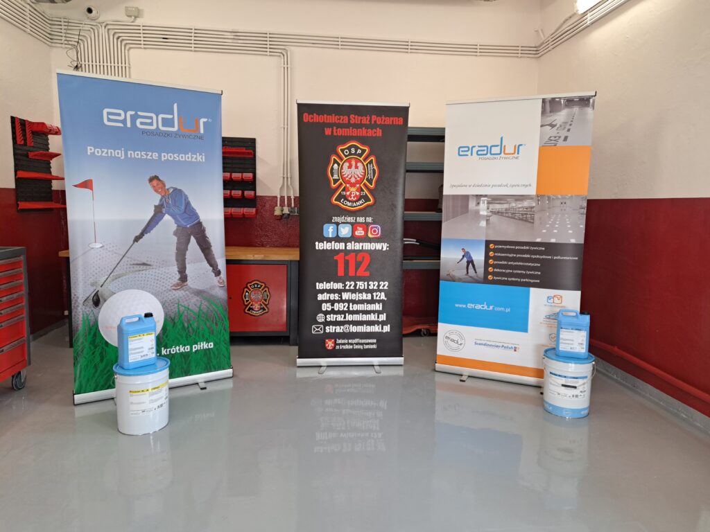 Ochotnicza Straż Pożarna w Łomiankach jest jedną z najczęściej interweniujących jednostek w powiecie warszawskim zachodnim i województwie mazowieckim. Eradur od samego początku (od 2003 roku) ma swoją siedzibę na terenie Gminy Łomianki. Działając w sąsiedztwie, jesteśmy bezpośrednim świadkiem rozpoczynających się akcji, jakie nasi sąsiedzi podejmują ratując życie ludzi i ich mienie. Dlatego cieszymy się, że tym którzy robią dla nas tak wiele, mogliśmy przynajmniej w takim stopniu pomóc. Wierzmy, że nowa posadzka żywiczna ułatwi i uprzyjemni pracę strażakom.