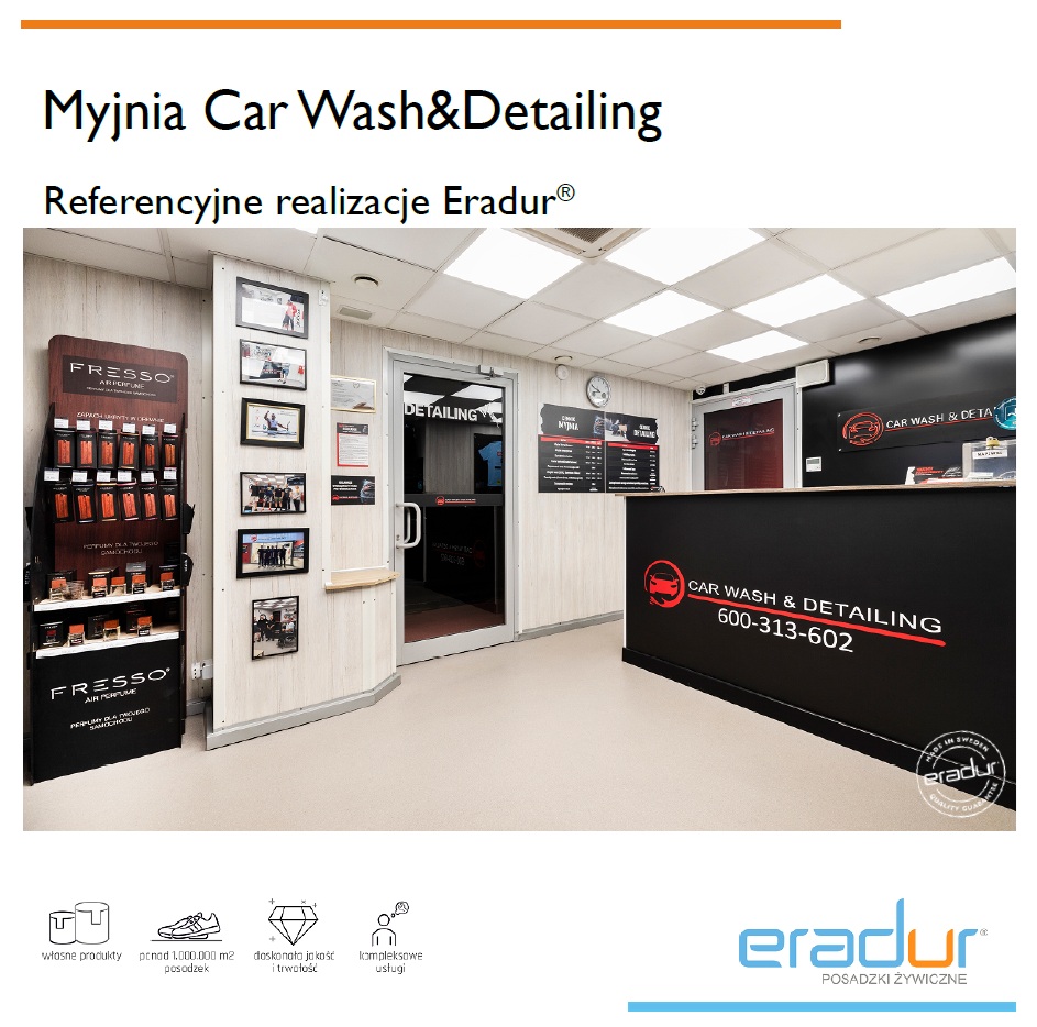 Myjnia Car Wash&Detailing jest integralną częścią międzynarodowej sieci punktów SONAX SERVICE. Firma zajmuje się kompleksową pielęgnacją pojazdów w zakresie ręcznego mycia i pielęgnacji aut i po kilku latach działalności zdecydowała się na zmianę posadzki na żywiczną. Zdjęcia z prezentowanej sesji ukazują posadzkę po 6 latach użytkowania.