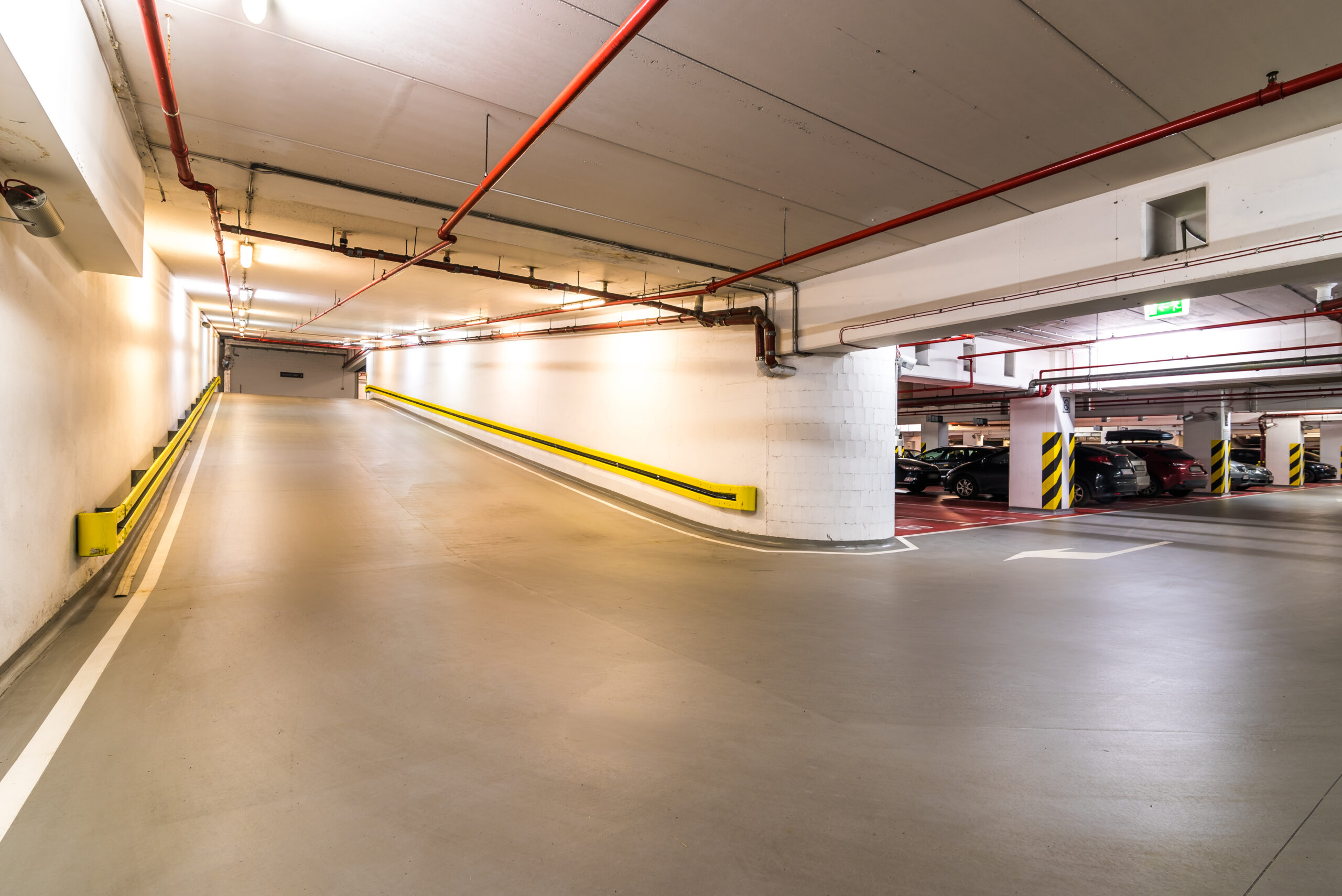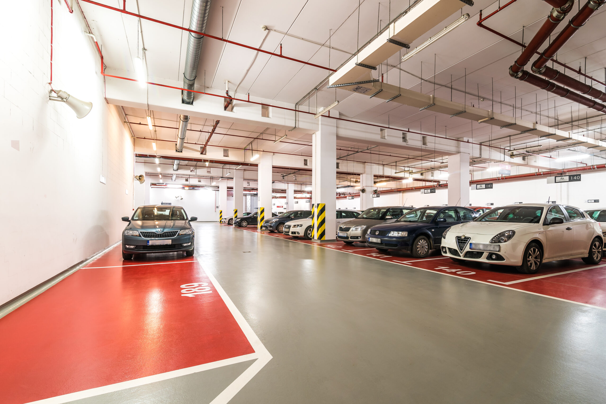 Efekt został osiągnięty dzięki zastosowaniu antypoślizgowego systemu posadzkowego, który charakteryzuje wysoka twardość i trwałość. Zastosowany system jest odporny na działanie środków chemicznych, spalin, soli drogowej i wody. Dzięki temu podłoże betonowe zabezpieczone zostało m.in. przed korozją chlorkową. Posadzka posiada ponadto zdolność mostkowania zarysowań w klasie A2 zgodnie z normą PN-EN 1504- 2:2006. Szeroki wachlarz kolorów zapewnił swobodę w wydzieleniu stref na otwartej przestrzeni, oznaczeń pionowych, miejsc postojowych i stref ruchu.