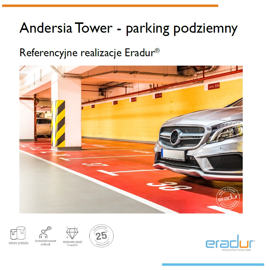 Centrum hotelowo-biznesowe Andersia Tower jest jednym z najwyższych budynków powstałych w sercu Poznania. W wieżowcu znajdują się biura, hotel, sieć punktów usługowych i dwupoziomowy parking podziemny, liczący 200 miejsc postojowych. Zadaniem firmy Eradur było wykonanie posadzki żywicznej, zabezpieczającej powierzchnię tej strefy budynku.